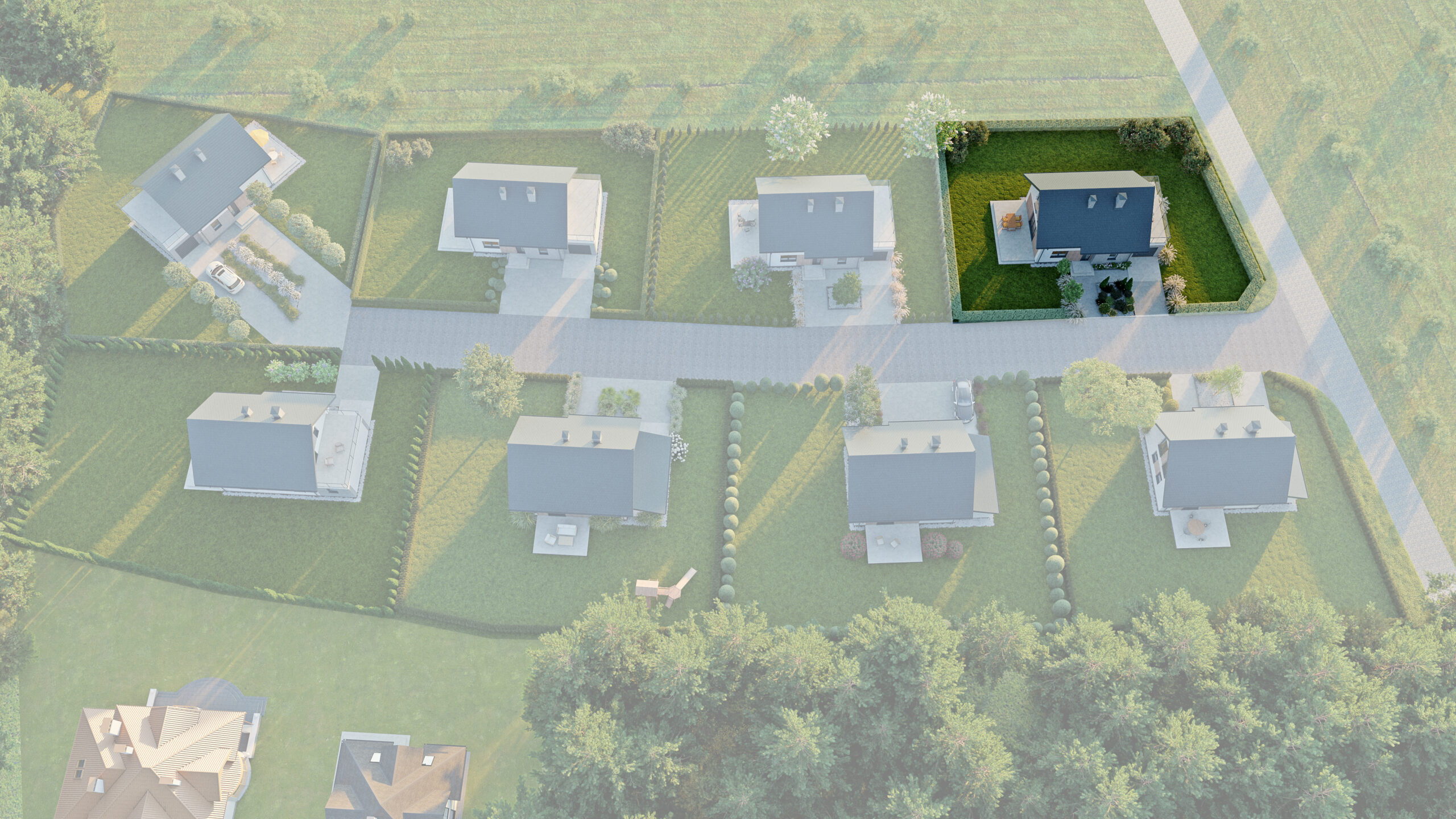 Z uwagi na swoją narożnikową lokalizację i taras nad garażem, jest to doskonałe miejsce do obserwacji okolicy.